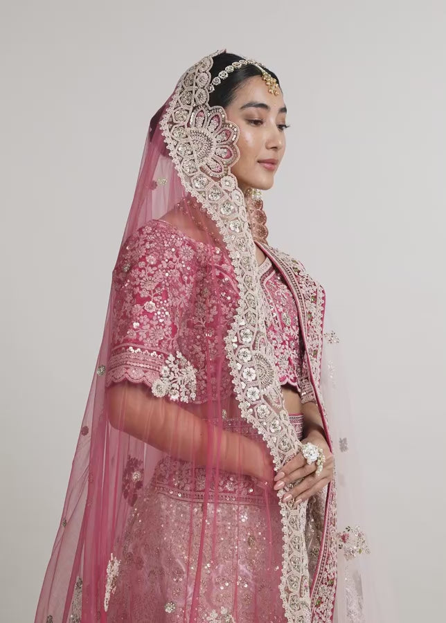 Exquisite Dusty Light Pink Velvet Bridal Lehenga with Embroidery